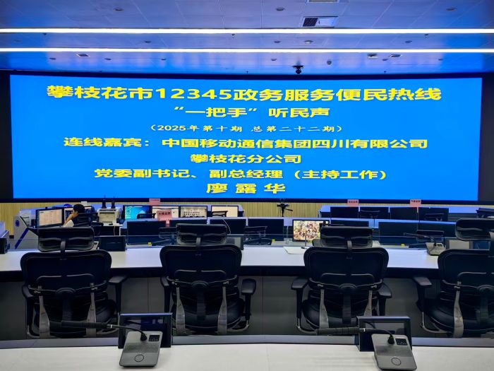 10月23日上午,我市开展2025年第十期“一把手”听民声活动,中国移动通信集团四川有限公司攀枝花分公司党委副书记、副总经理廖露华走进攀枝花市12345群众服务中心,上线接听12345政务服务便民热线,了解群众诉求,就大家所关注的业务办理、话费套餐、优惠活动、网络故障等问题进行细致解答。