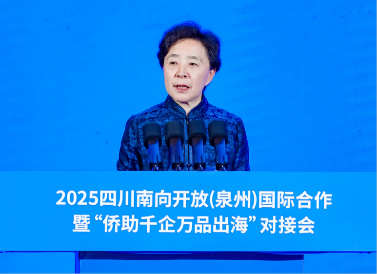 12月17日,以“丝路领航 侨助开放”为主题的2025四川南向开放(泉州)国际合作暨“侨助千企万品出海”对接会在福建泉州举行。活动由四川省经济合作局、四川省归国华侨联合会主办,四川省人民政府驻厦门办事处承办。四川省人大常委会副主任祝春秀出席活动并致辞。四川省人大外侨委主任委员朱新华、四川省人大常委会副秘书长罗春梅、四川省人大外侨委副主任委员何清,福建省人大侨台外事民宗委主任委员黄莼,四川省侨联主席杨东,福建省侨联主席陈式海,华侨大学校长吴剑平等出席活动,四川省经济合作局副局长何仕刚主持会议。