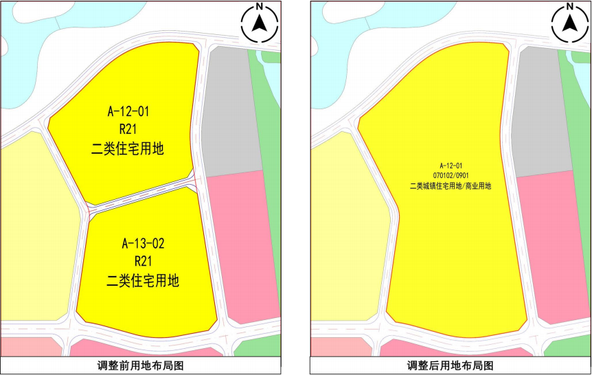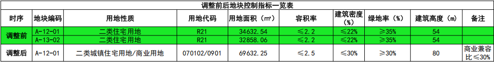 本次论证,将A-12-01与A-13-02地块之间的规划支路取消,并以论证范围为边线基准整合为一个新地块A-12-01,用地面积为69632.25㎡。