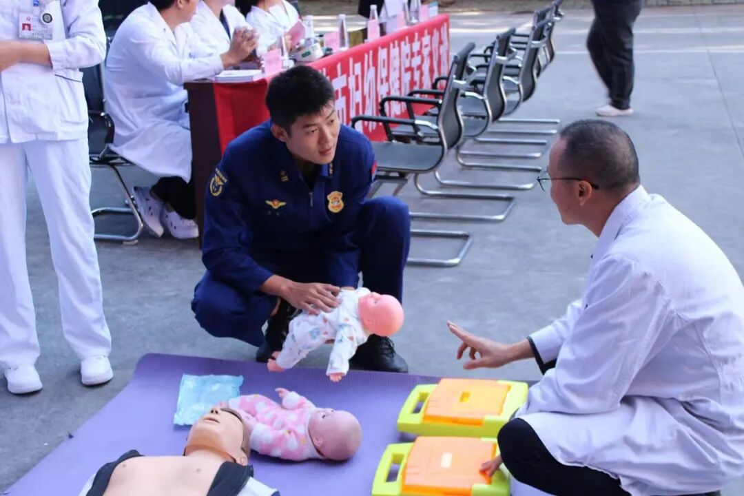 近日,市妇幼保健院组织医护人员走进东区消防救援大队,开展“万名医护走基层”暨“天府健康坝坝讲”活动。活动现场,医护人员借助成人与婴幼儿急救模拟教具、AED(自动体外除颤仪)训练设备,为消防队员演示了气道异物急救、自动体外除颤仪规范使用及心肺复苏操作流程。同时结合防灾减灾知识普及,开展健康义诊并提供个性化的健康管理指导,帮助群众掌握实用的应急处理技能,全面提升自我防护与健康管理能力。