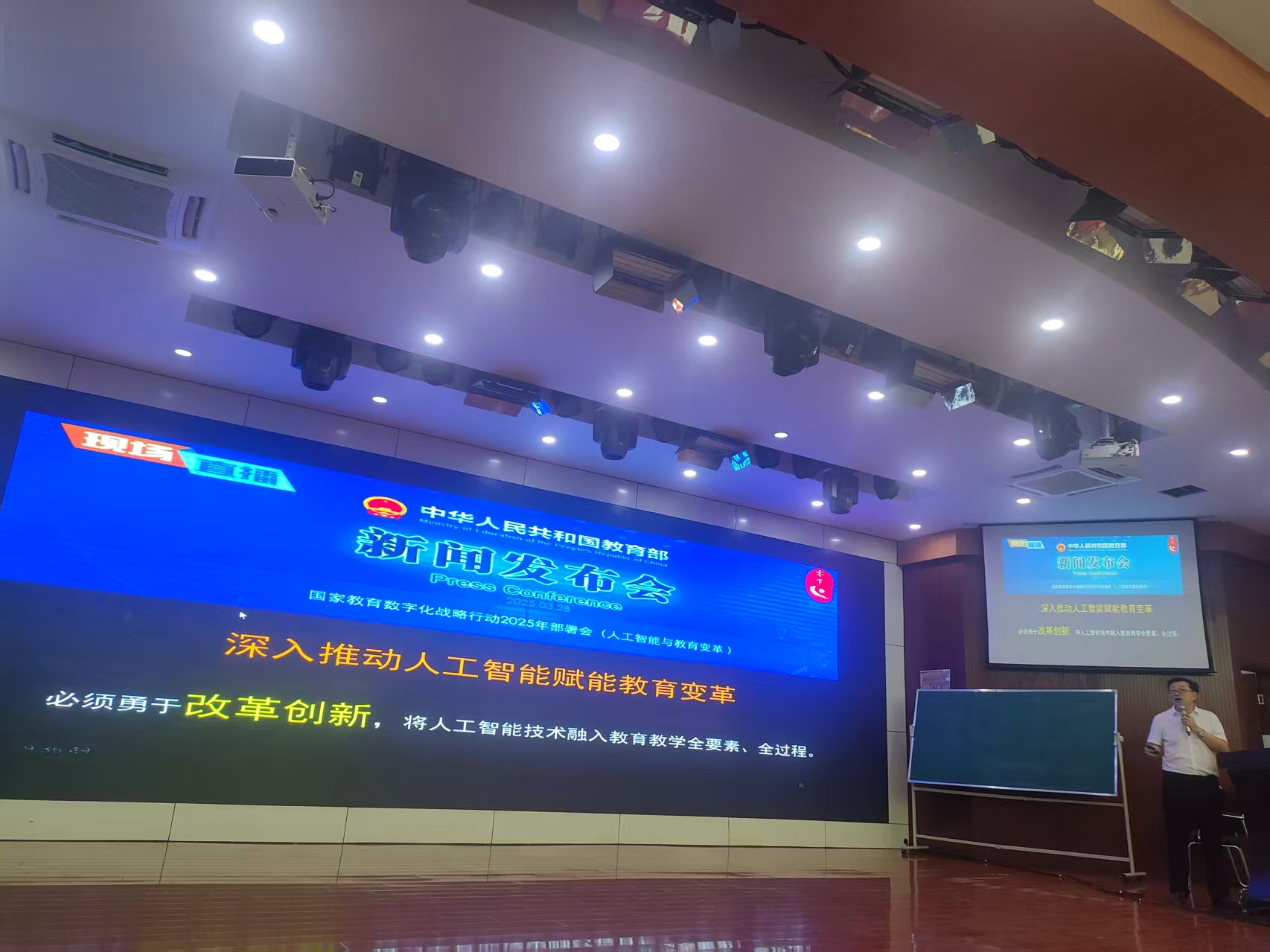 8 月 29 日,攀枝花市第二初级中学校全体教师齐聚一堂,参加了一场以“AIGC 与 DeepSeeK 赋能教育的应用实践”为主题的校本培训。此次培训旨在提升教师们对人工智能在教育领域应用的认识,推动信息技术与学科教学的深度融合。培训由重庆市大足区教育信息技术与装备中心副主任、中国智慧工程研究会智能学习名师专家、重庆市教育信息化专家陆浩主讲。