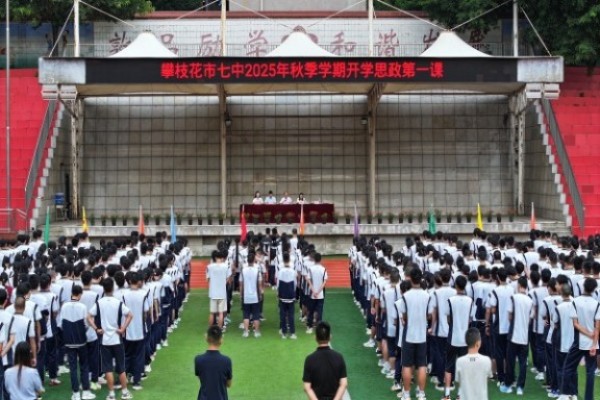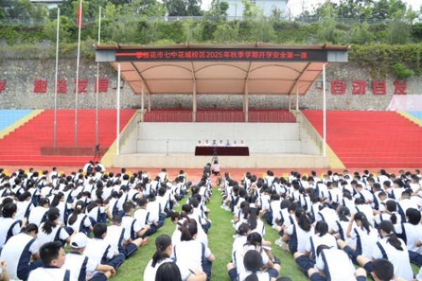 2025年9月1日上午,攀枝花市第七高级中学校分校区举行2025年秋季学期开学典礼,全校师生参加。西区检察院常务副检察长孔晓亮、仁和区交警大队副大队长李郑、西区清香坪派出所民警严光彩应邀出席。