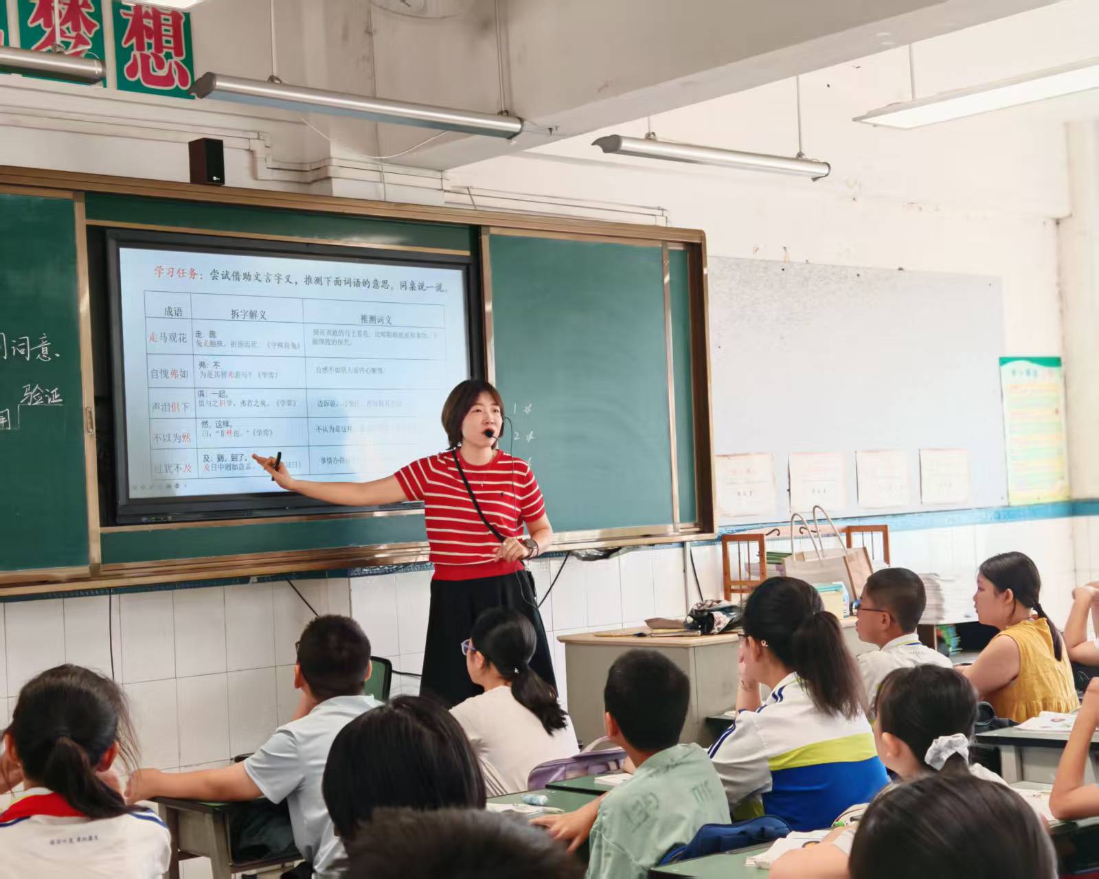 为了让语文课堂既有趣味又有深度,她在教学上从不松懈,课前会广泛搜集素材、反复打磨教案,善于将传统文化的元素融入课堂设计;课上践行“学探导练”教学模式,引导学生动手动脑、大胆表达,把枯燥的知识点转化为鲜活的互动体验,让学生真正成为课堂的主人。她不仅专注校内教育教学,还主动承担各级教研任务。近五年,她累计承担市区级教研任务30余次、市区级示范课10余次;执教的课例《跳水》荣获攀枝花市优质课展评一等奖、四川省优质课展评二等奖,课例《田家四季歌》荣获攀枝花市东区创新课堂展评一等奖、四川省教育成果课堂实录评选二等奖;2024年9月,她和团队成员设计的小学语文、道德与法治作业荣获省级一、二等奖。