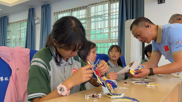 “视界筑航・创享未来”专场里,听力障碍孩子们正睁大眼睛观看飞行视频,眼里满是惊叹。随后,老师展示真实航模,逐一展示机身、机翼、螺旋桨。最让人期待的组装环节,孩子们拿着未组装的电动小飞机零件,跟着老师的拆解步骤图一步步拼接。