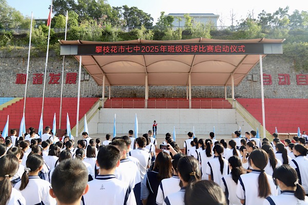 2025年10月27日上午,市七中花城与西城两校区同步举行班级足球比赛启动仪式。