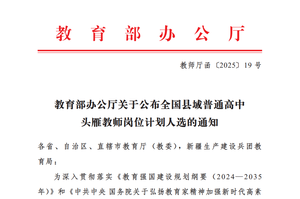 根据《教育部办公厅关于公布全国县域普通高中头雁教师岗位计划人选的通知》(教师厅函〔2025〕19号),四川省米易中学校崔丽梅教师经过学校自主申报、省级教育行政部门审核公示、等额推荐、会议评议,被确定为全市唯一首批全国县域普通高中头雁教师岗位计划人选。