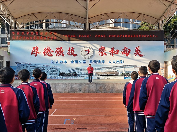 2025年11月17日上午,攀枝花市经贸旅游学校、攀枝花市综合实验高级中学校围绕“厚德强技,崇和尚美”校训精神,开展了一场深刻而生动的学校领导、老师对话学生健康成长教育活动。校长傅梅以《厚德强技,崇和尚美——我们经贸人的精神坐标》为题,与广大师生共话成长之路,凝聚奋进力量。
