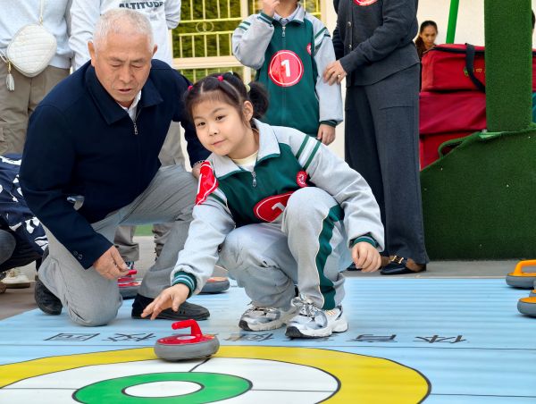在“趣味旱地冰壶”中,盲生借助赛道关键点位的触觉凸起熟悉场地,在志愿者轻声提示下调整推壶力度,用听觉感知比赛;聋生携手志愿者组成对战队伍,在标准赛道上轮流推壶,以肢体语言传递战术;培智生瞄准“彩色目标区”体验推壶,志愿者全程辅助调整姿势。从摸索尝试到顺利得分,学生们的笑容与欢呼声充满赛场,志愿者的耐心陪伴让孩子们在运动中收获自信与快乐。