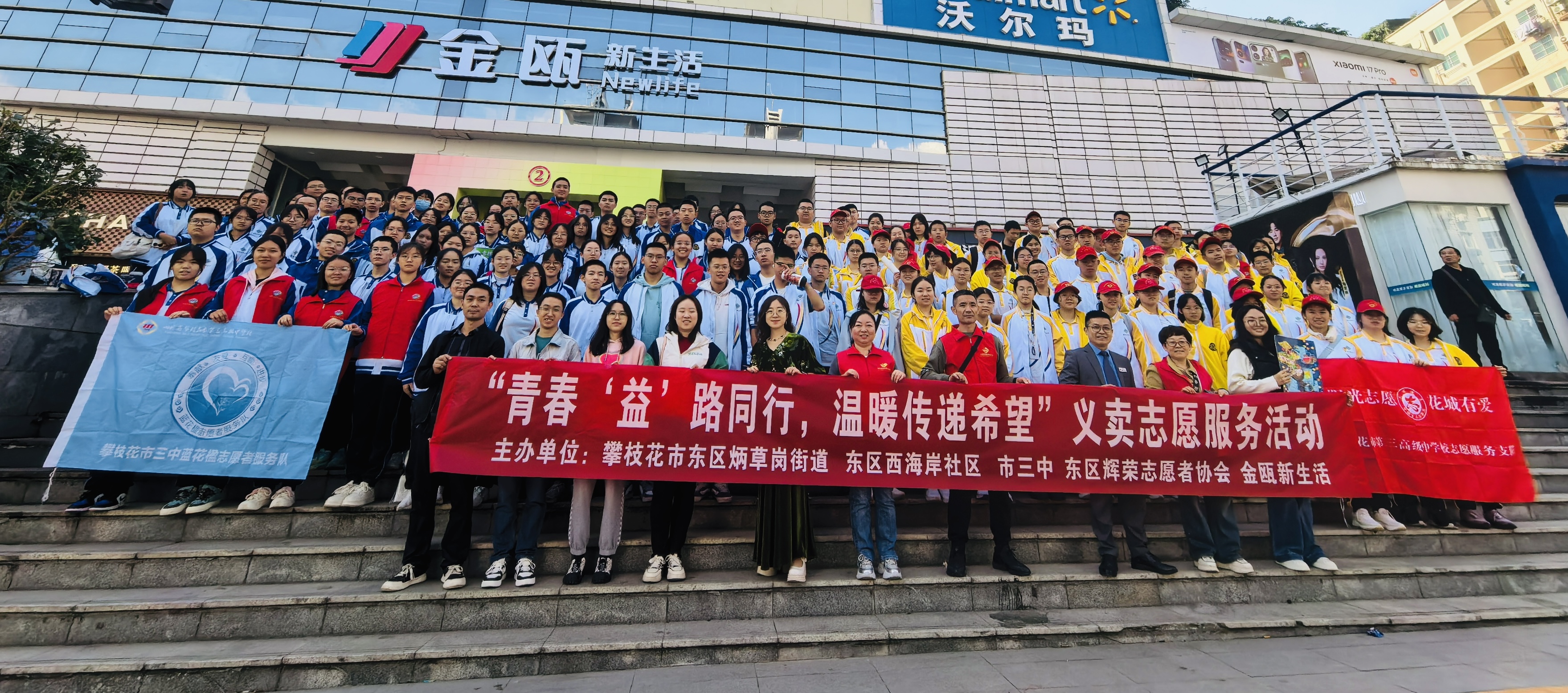 为深入推动党的二十大精神在校园落地生根,积极践行社会主义核心价值观,弘扬“奉献、友爱、互助、进步”的志愿精神,市三中校团委联合攀枝花市东区炳草岗街道、东区西海岸社区、辉荣志愿者协会等,组织开展了2025年度“青春‘益’路同行,温暖传递希望”爱心义卖志愿服务活动。