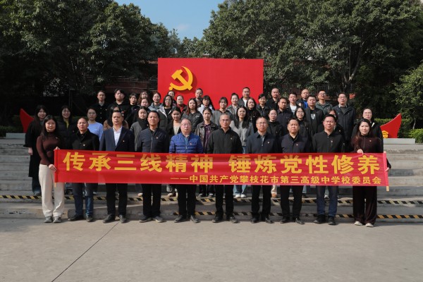 2025年12月13日,攀枝花市第三高级中学校党委组织全体在岗党员同志赴攀枝花西区初心园与“火红年华”教育基地,开展以“传承三线精神,锤炼党性修养”为主题的沉浸式党性锻炼活动,进一步强化党员宗旨意识、锤炼坚强党性。校党委班子成员以普通党员身份参加活动。