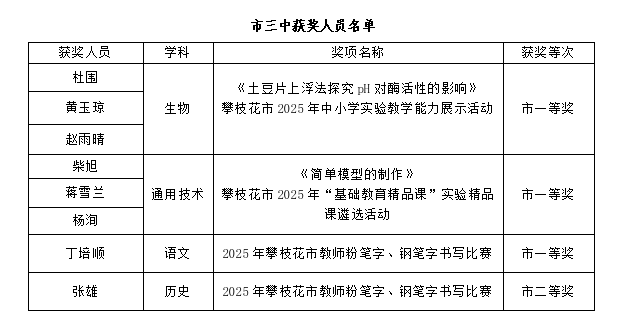 在此,我们特向所有获奖教师表示热烈祝贺!愿全校教师以榜样为镜,永葆育人热忱,深植教学沃土,敢于突破创新,携手共赴市三中教育教学发展的新征程,为学校内涵提升与区域教育进步注入更深厚的力量!