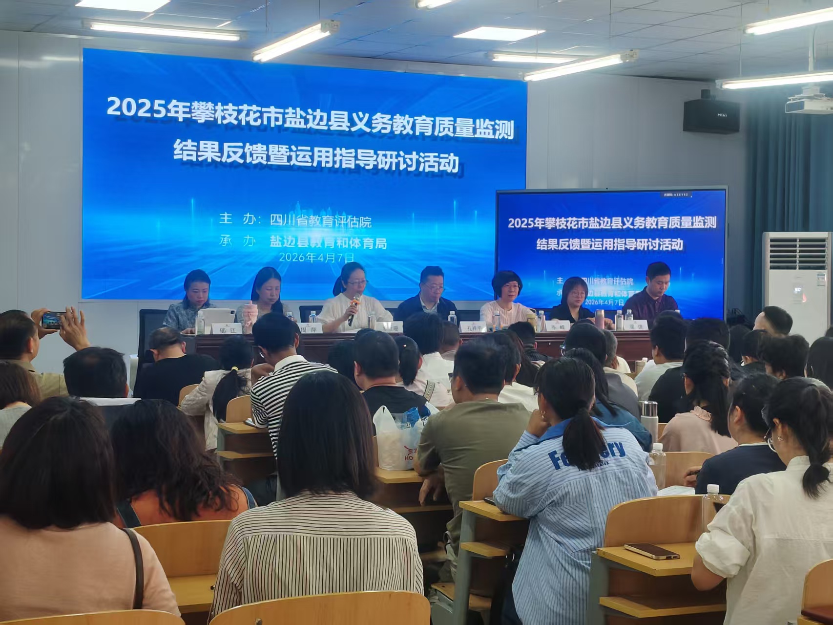 为用好四川省义务教育质量监测结果,精准查找县域义务教育教学短板,切实提升教育教学质量,4月7日,盐边县2025年四川省义务教育质量监测结果反馈暨运用指导活动在第一中小学校初中部校区举办。省教育评估院相关负责人、各学科专家,县教育和体育局相关工作人员、全体教研员,全县4所九年一贯制学校教学管理负责人,以及艺术、劳动、科学等学科骨干教师共计100余人参加此次活动。