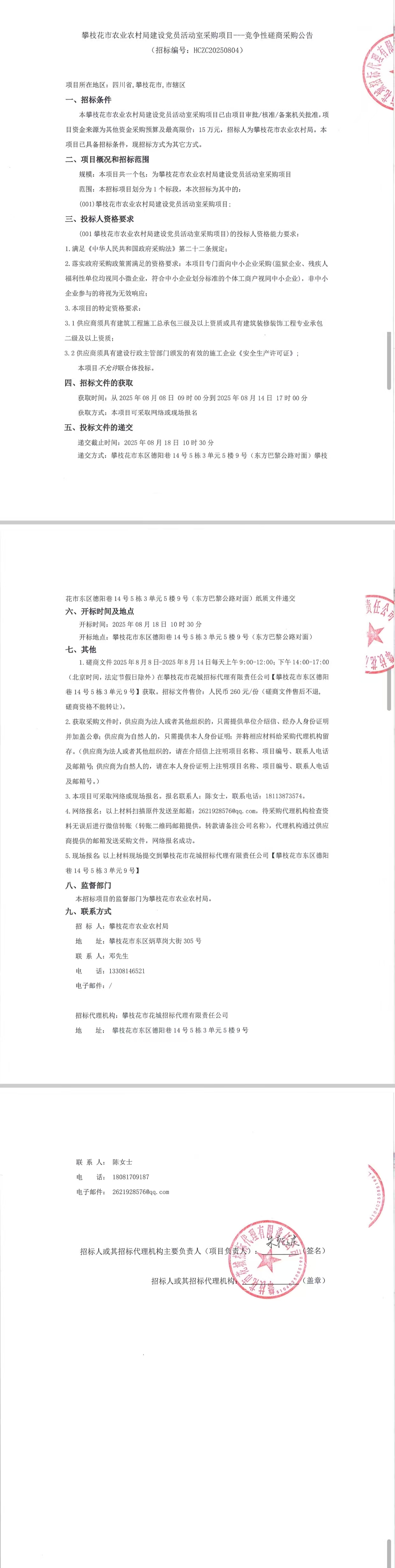 攀枝花市农业农村局建设党员活动室采购项目---竞争性磋商采购公告