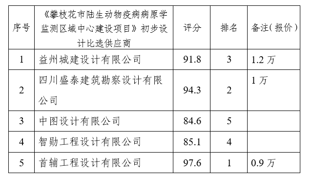 攀枝花市陆生动物疫病病原学监测区域中心建设项目初步设计比选评审结果公示