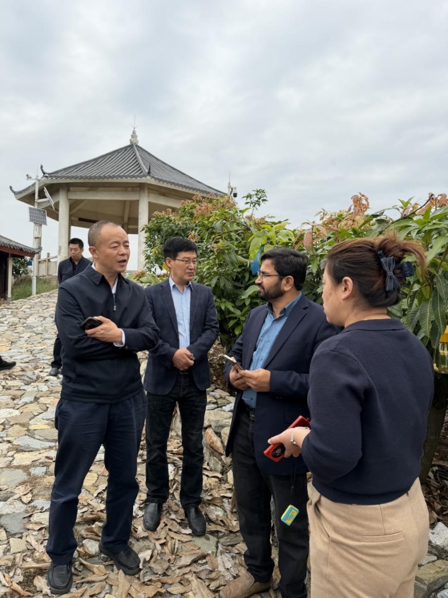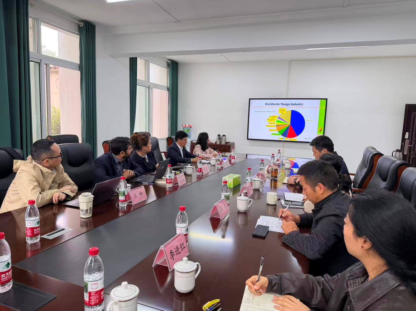 为实地考察我市芒果产业先进技术及发展现状,推动“攀果”技术、产业、标准沿“一带一路”加快“走出去”,扩大芒果产业国际影响力,2025年11月4日至5日,中国农业科学院都市农业研究所战略与规划团队、巴基斯坦木尔坦芒果研究所Maqbool Ahmad一行,赴我市混撒拉村、攀香源芒果加工厂、市农林科学研究院开展芒果产业专项调研及座谈交流。市农业农村局、市农林科学研究院陪同。