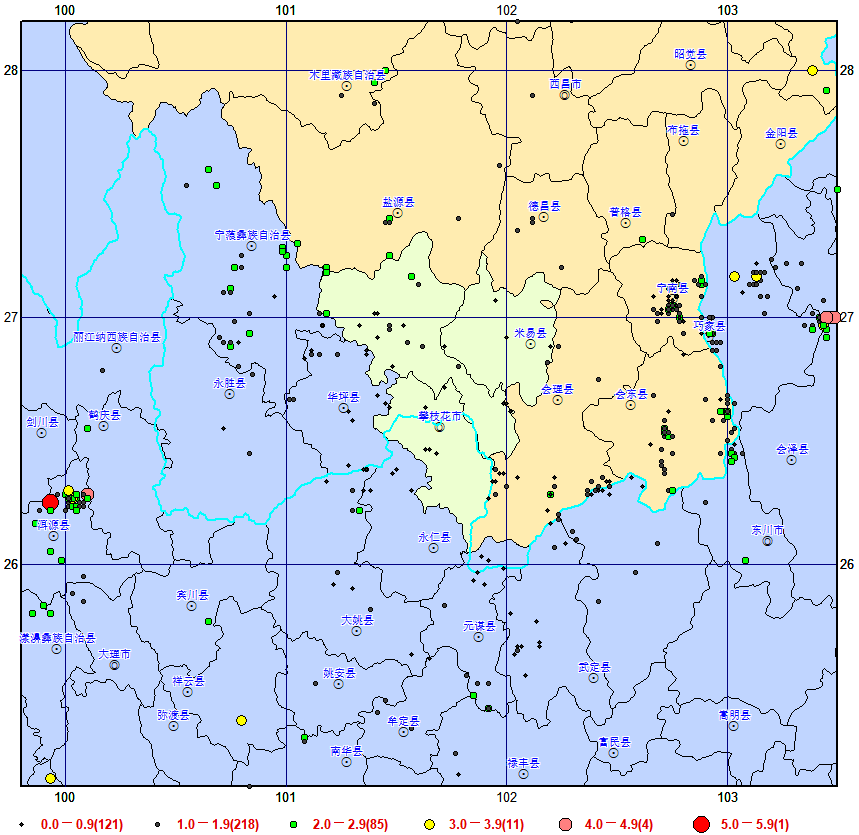 2025年1-10月,攀枝花市地震监测中心累计监测到本市及周边地区地震667次(多台定位440次,单台记录227次),最大地震为6月5日04时31分云南大理州洱源县5.0级地震;攀枝花市辖区内共监测到27次可定位地震,最大地震为7月26日15时32分盐边县红宝苗族彝族乡2.4级地震。