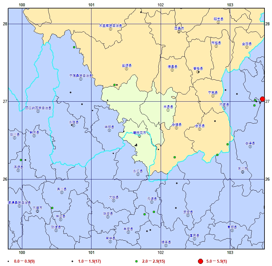 2026年1月攀枝花市及周边地区震中分布图(多台定位)