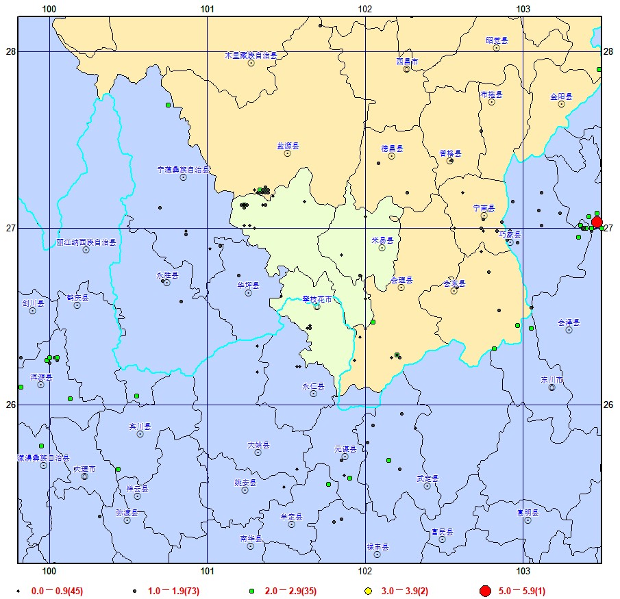 2026年1-3月攀枝花市及周边地区震中分布图(多台定位)
