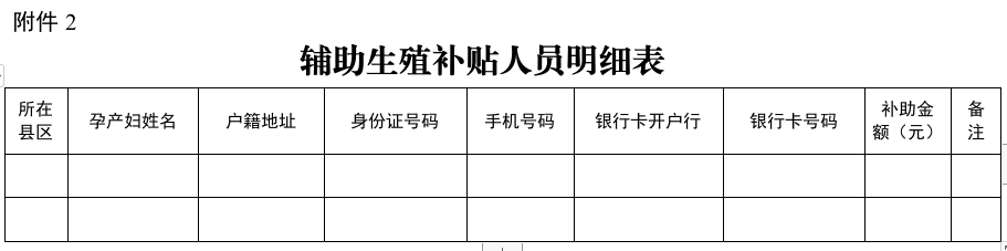 第三条 补贴标准。为符合条件的孕产妇给予一次性5000元的辅助生殖补贴。