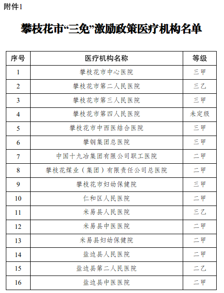 附件:1.攀枝花市“三免”激励政策医疗机构名单