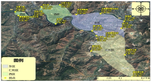 五十四至仁和片区:北部紧邻东区,南至海控湾大桥(E:101.761,N:26.454),东至下龙潭弃土场(E:101.750,N:26.502),西至普达阳光(E:101.694,N:26.510)。