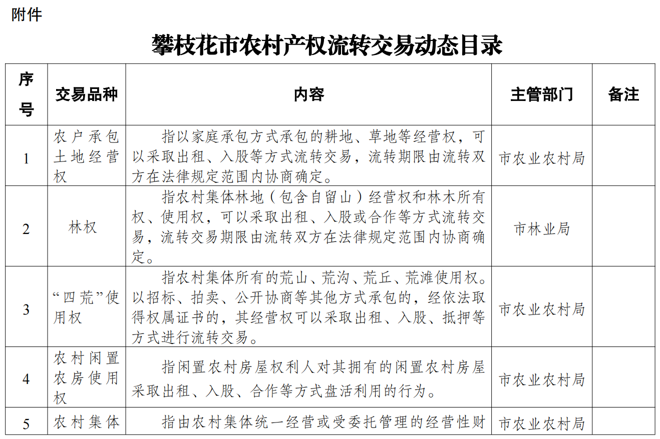 附件:攀枝花市农村产权流转交易动态目录
