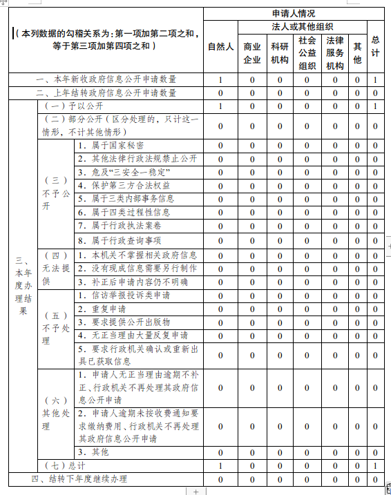 严格按照《条例》规定,规范受理、审核、办理、答复、归档等各环节工作流程,依法保障公民、法人和其他组织依法获取政府信息的权利。全年收到并处理政府信息公开申请1件,并在法定期限内予以答复。