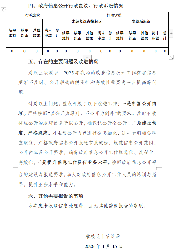 攀枝花市信访局 2025年政府信息公开工作年度报告