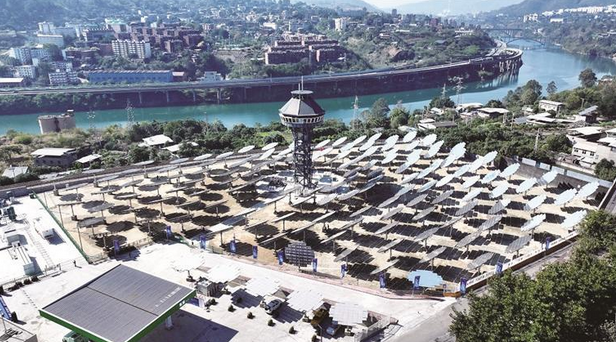 图为位于攀枝花市西区的多面体钛酸锶聚光制(加)氢一体站中试基地。12月4日,全球首条光解水制氢生产线在此竣工投运。