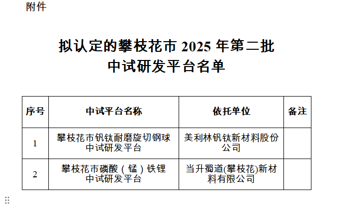 攀枝花市科学技术局关于拟认定攀枝花市2025年第二批中试研发平台的公示