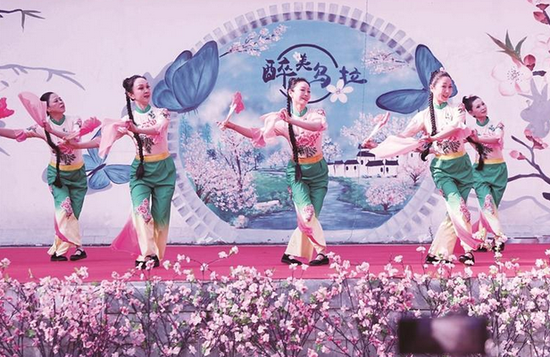 图为桃花节开幕现场的文艺表演。 (徐杨 摄)