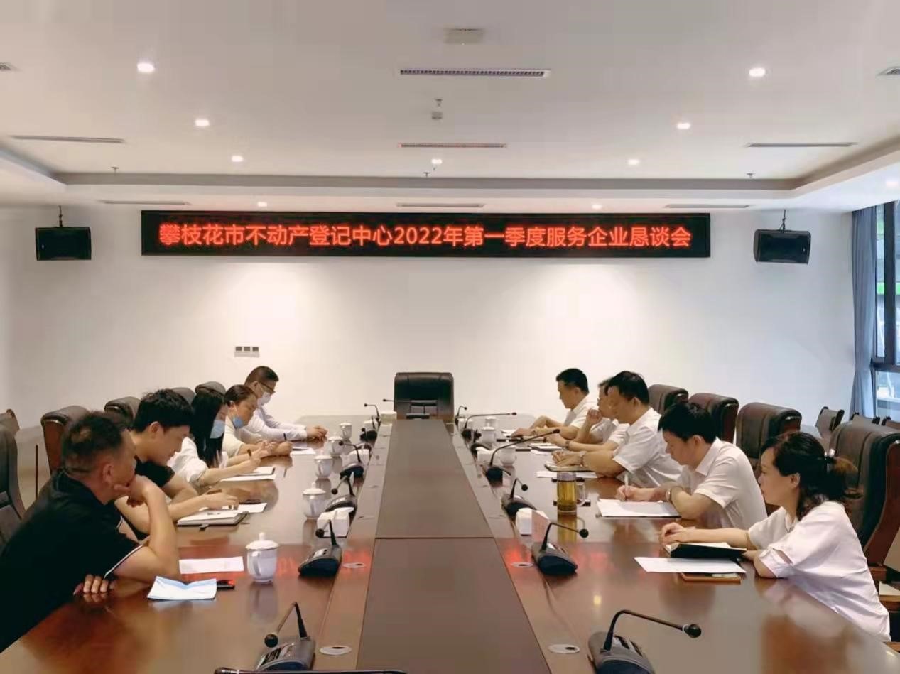 2022年3月23日,市不动产登记中心在“市民中心”515会议室主持召开攀枝花市不动产登记中心2022年第一季度服务企业恳谈会,中心领导班子及综合科负责人参加会议,攀枝花市天宇实业有限公司、攀枝花市高宇房地产开发有限公司、攀枝花市恒邦鼎誉置业有限公司、攀枝花鑫洋置业有限公司、攀枝花国信睿德置业发展有限公司等5家开发企业代表参加了座谈。