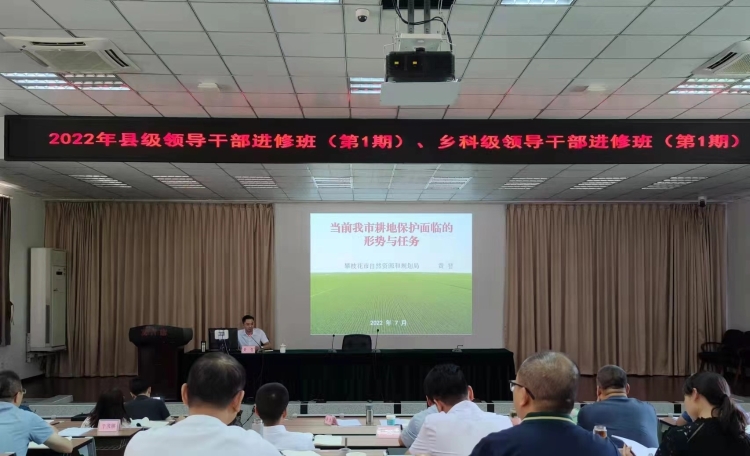 7月11日,市自然资源和规划局党组成员、副局长黄智应邀到市委党校,对我市2022年乡科级领导干部进修班(第一期)学员,围绕“全市耕地保护面临的形势与任务”开展专题培训。