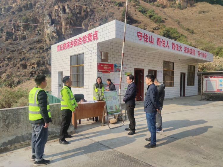 杨林一行首先采取“四不两直”方式到米易县湾丘彝族乡两岔河森林防火卡点检查卡点人员值守情况。杨林要求:一是严格落实进山人员、车辆登记;二是严禁进山人员携带火种入山;三是严格落实森林草原防灭火“七个一”制度。