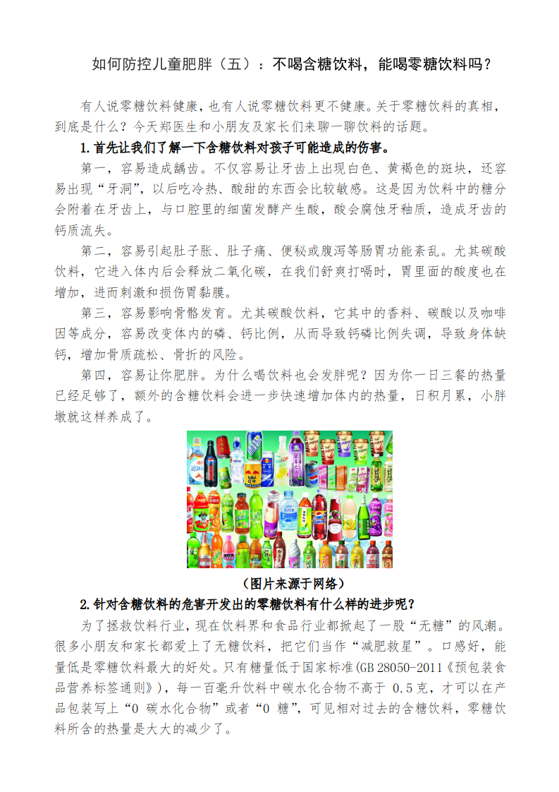 如何防控儿童肥胖(五):不喝含糖饮料,能喝零糖饮料吗?