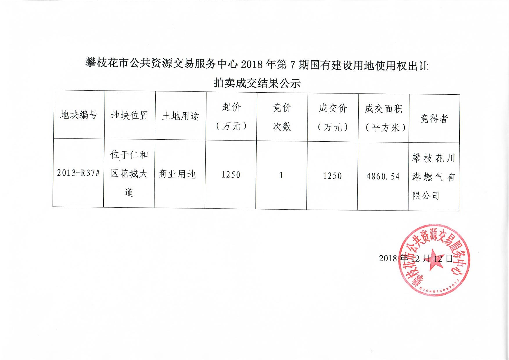 攀枝花市公共资源交易服务中心2018年第7期国有建设用地使用权出让拍卖成交结果公示