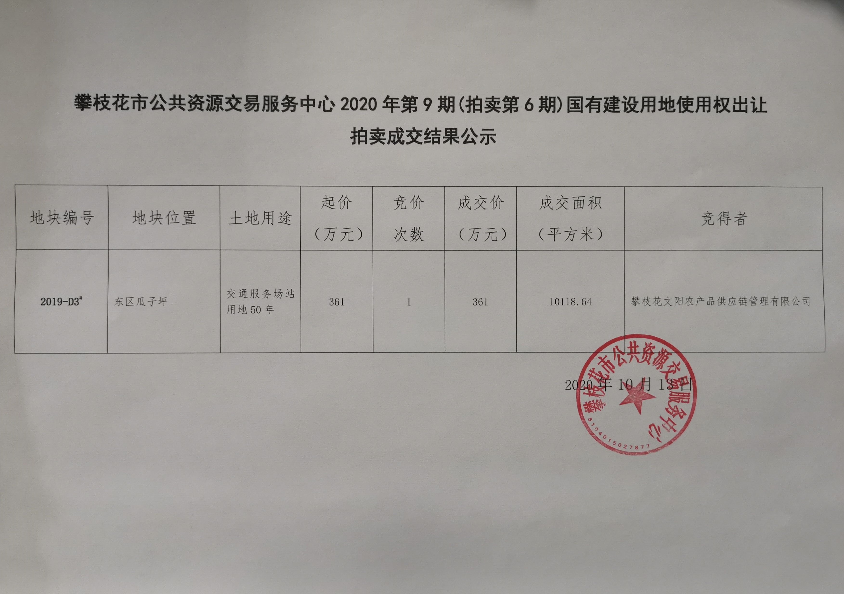 攀枝花市公共资源交易服务中心2020年第9期(拍卖第6期)国有建设用地使用权出让拍卖成交结果公示