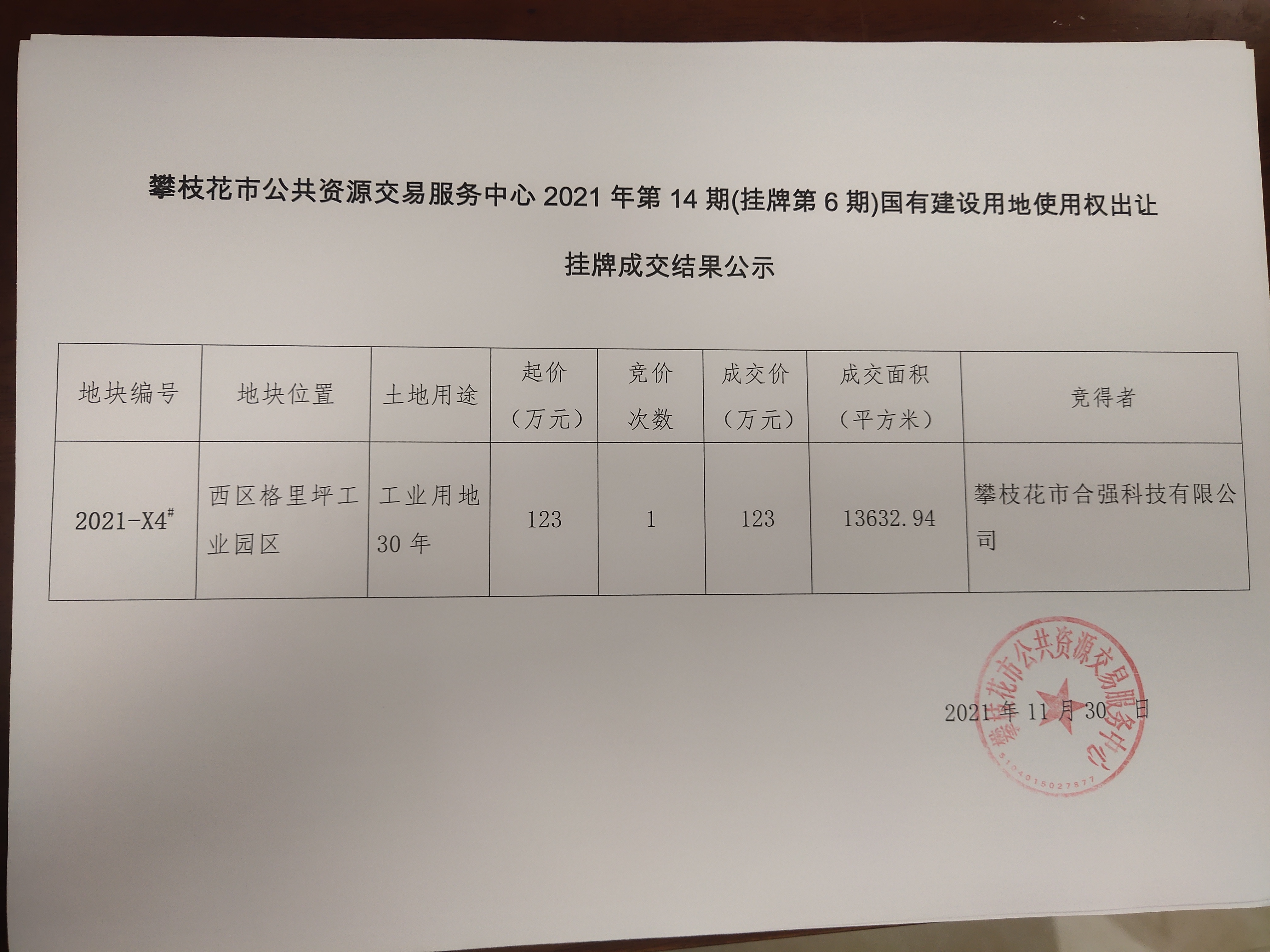 攀枝花市公共资源交易服务中心2021年第14期(挂牌第6期)国有建设用地使用权出让挂牌成交结果公示