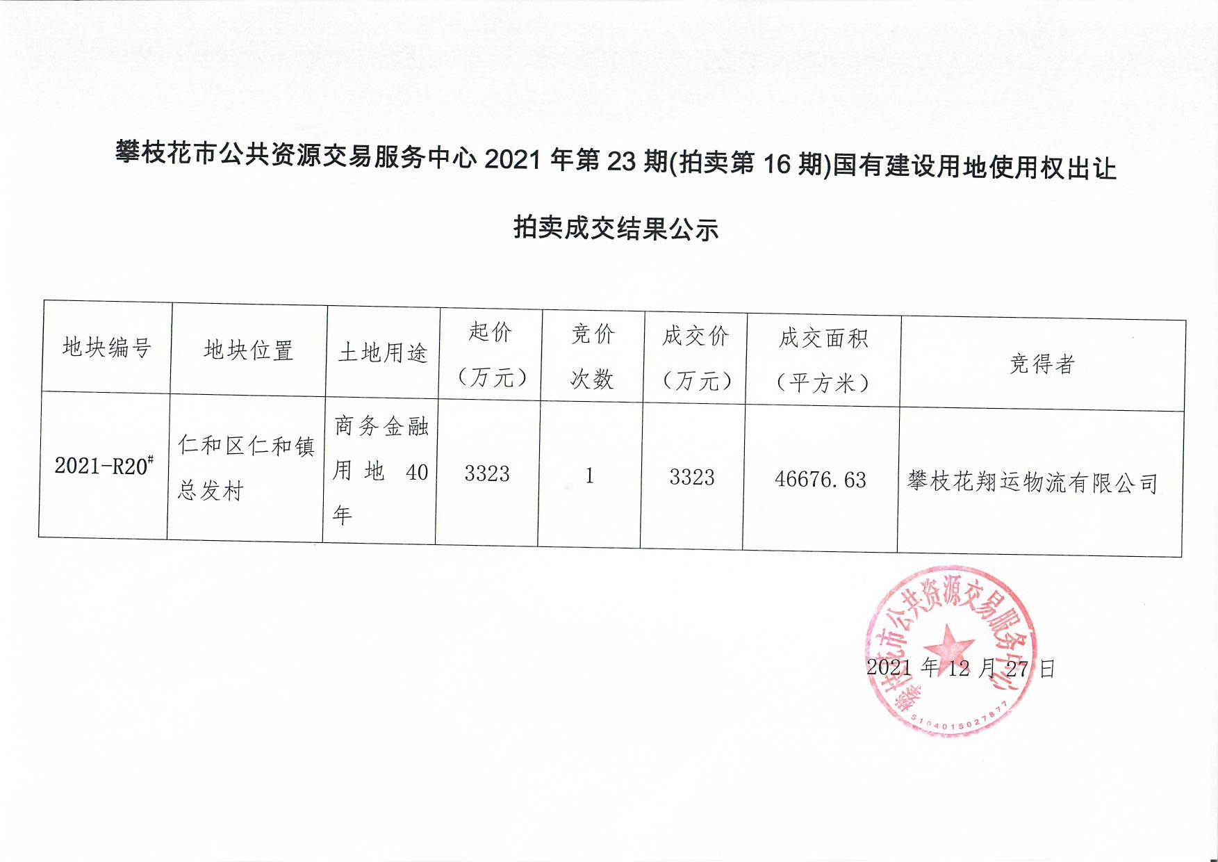 攀枝花市公共资源交易服务中心2021年第23期(拍卖第16期)国有建设用地使用权出让拍卖成交结果公示