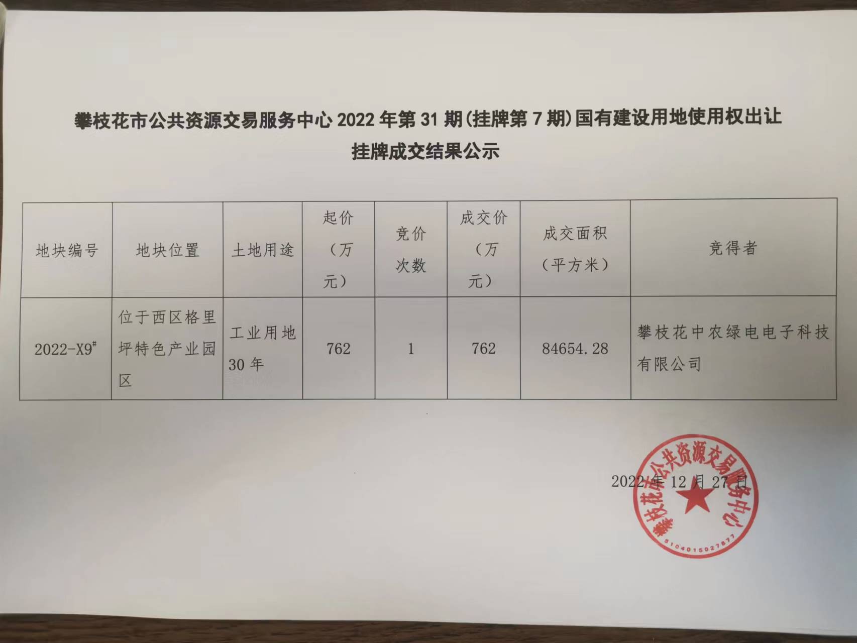 攀枝花市公共资源交易服务中心2022年第31期(挂牌第7期)国有建设用地使用权出让挂牌成交结果公示