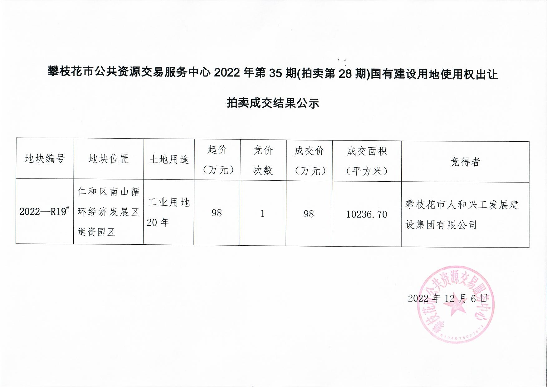 攀枝花市公共资源交易服务中心2022年第35期(拍卖第28期)国有建设用地使用权出让拍卖成交结果公示