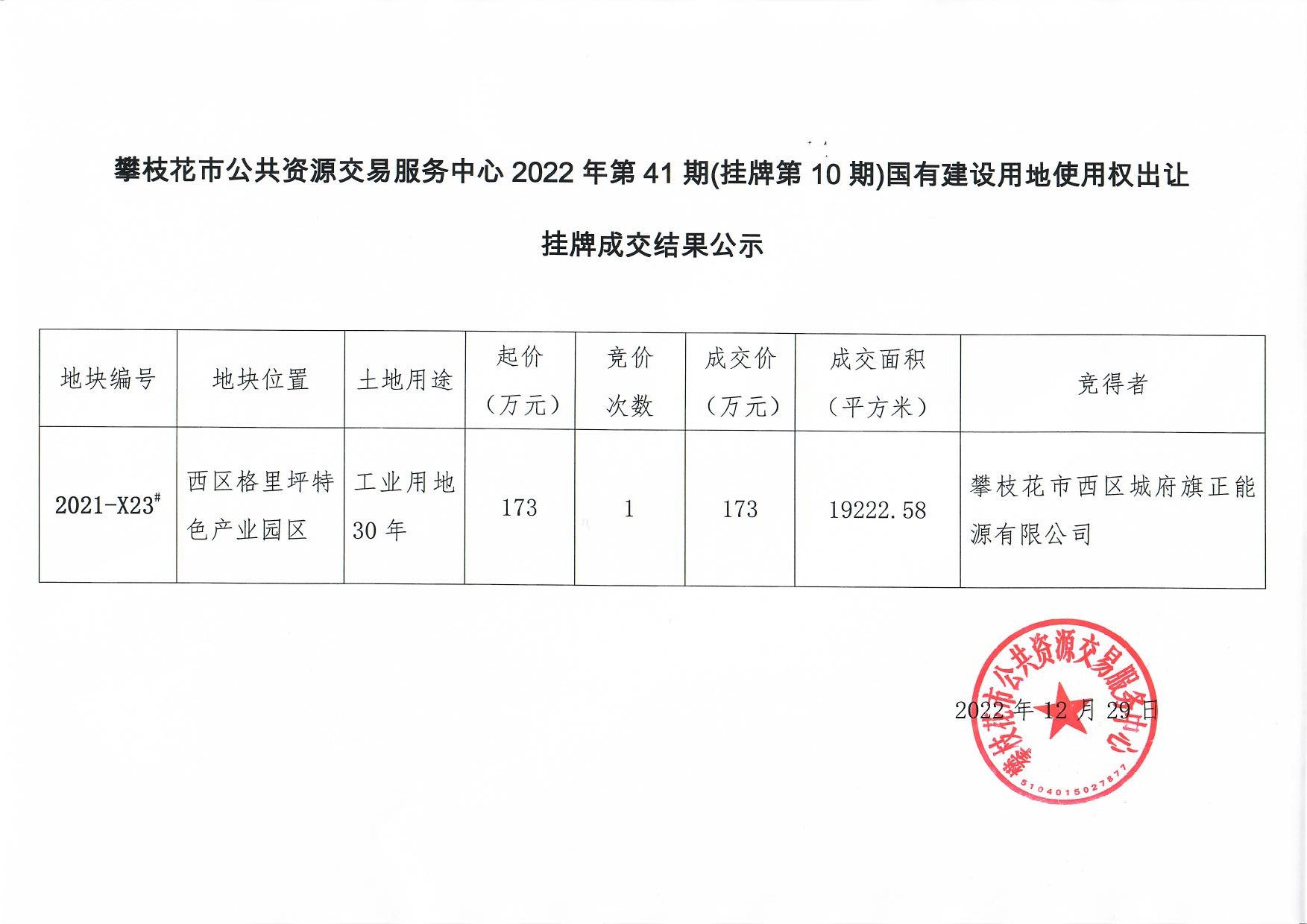 攀枝花市公共资源交易服务中心2022年第41期(挂牌第10期)国有建设用地使用权出让挂牌成交结果公示