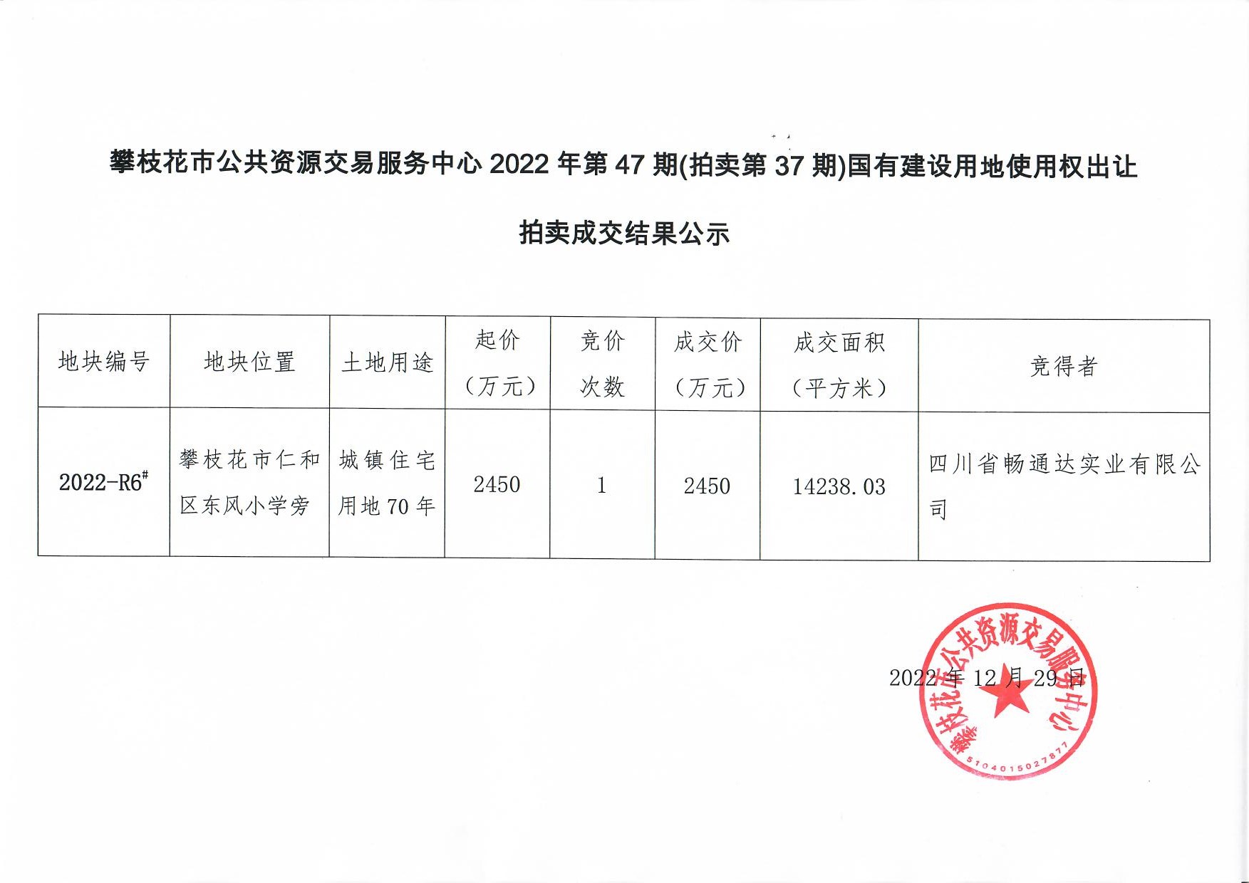 攀枝花市公共资源交易服务中心2022年第47期(拍卖第37期)国有建设用地使用权出让拍卖成交结果公示