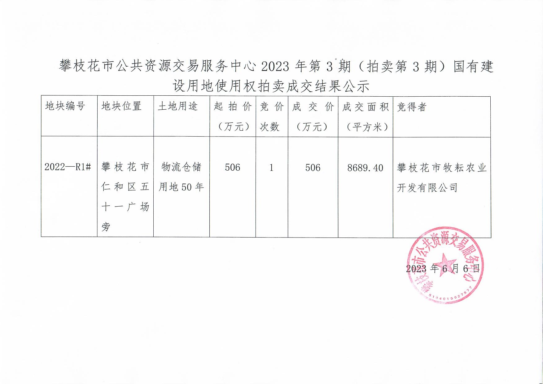 攀枝花市公共资源交易服务中心2023年第3期(拍卖第3期)国有建设用地使用权拍卖成交结果公示