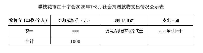 攀枝花市红十字会2025年7-8月社会捐赠款物支出情况公示