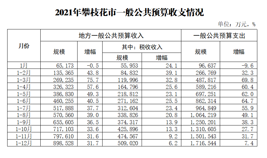 2021年攀枝花市一般公共预算收支情况(按月).xlsx