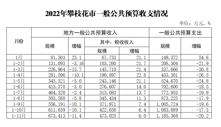 2022年攀枝花市一般公共预算收支情况(按月).xlsx