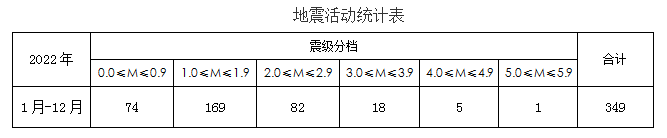 2022年度我市及周边地区地震活动统计表及震中分布图如下所示: