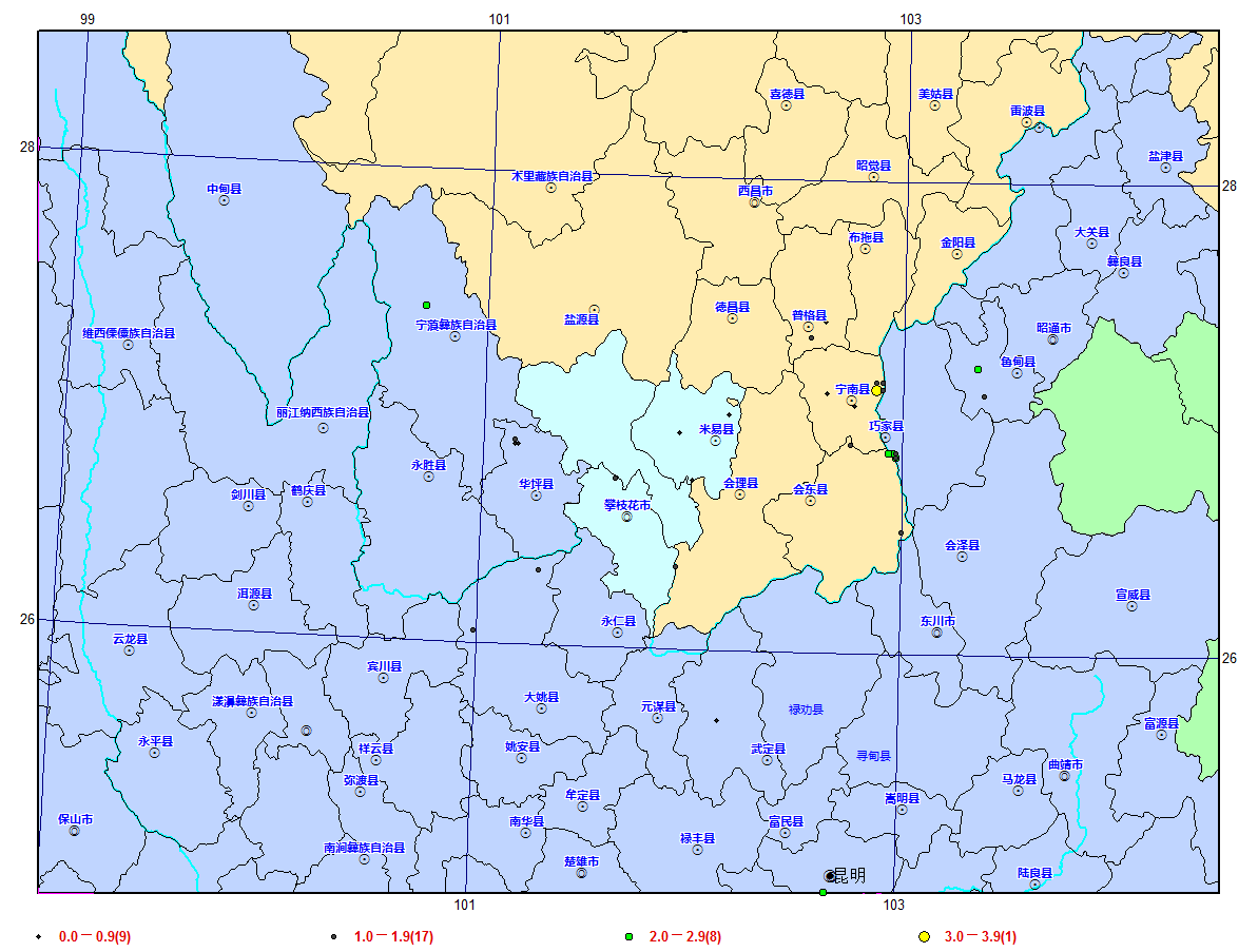 本月我市境内共监测到3次地震,分别发生在米易县白马镇、麻陇乡和仁和区同德镇,其中最大地震为1月25日01时54分仁和区同德镇1.6级,震源深度10公里,震中距离市中心约18公里。