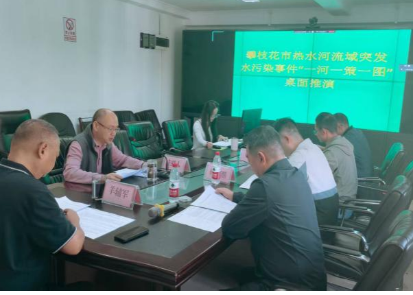 2025 年 11 月 11 日上午10点,按照生态环境厅统一安排,攀枝花市生态环境局牵头组织开展了热水河流域突发水污染事件“一河一策一图”桌面推演,生态环境厅应急中心主任马祥等进行观摩与点评,市生态环境局党组成员、副局长羊辅军,相关科室负责人及各县(区)生态环境局分管领导在各自会场观摩学习,共计约20人参加。